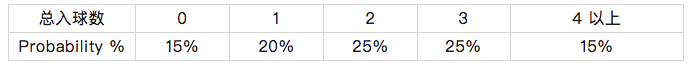 举例来说,拥有3个或3个以上入球的赛事的机率可以这样来计算:
